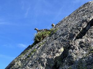 【2日目:快晴】天の川流れる夜明け前、西穂山荘を出発。独標に着くころには空が明るくなってきて、朝焼けの山々がとてもきれいだった。西穂高岳までは2時間半ほどで到着。ツアー団体客を追い抜きながら、「なんか登山慣れしてる人みたいだ」と、勝手に自己肯定感が上がる。間ノ岳を過ぎ、間天のコルではしっかり大休憩。逆層スラブを過ぎた辺りで雷鳥の親子に遭遇。こんな過酷な場所で、健気に生きる姿に感動だ。天狗のコルは