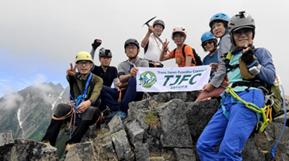 に交じって買って食べ、上高地観光気分を味わった。 あとで風呂も入ったが小梨平がこんないいところだと初めて知った。昼から豪雨もあったが2時間ほどで雨も止み、ロープワーク練習をして晩飯はカレーとまたビール、焼酎もくらって寝た。7月27日(日)4時に出発するとCLが言っていたにもかかわらず、3時前まで起きないので案の定、出発は4時半、暗い河童橋も初めてだったが、健脚以上のスピードで分岐の風穴にあっという間に着いた。さて、そこからが大変、整備はあまりされてなく、まずは笹の藪漕地獄からはじまった。勾配はずっと急で、分岐の風穴から明神5峰まで水平距離で2kmぐらいに対し、1km登った。しかも、先頭を一番若いMさんにしたのが間違いで、SLの自分が行くべきだった。健脚以上の速さで自分はうしろから3番目で次がCLで最後がA部長の順番だった。後が遅れるのは予想していたが、自分も少し遅れ気味でついていけない、驚いたのは他の女性メンバーが誰も遅れないではないか。ロープを背負っている自分ではあったが少し悔しかった。5峰の頂上は、写真の↓がついているところです。ほとんどマウンテンのコースでしたが、途中ロープがはってあった岩場もあり、アルパインコースになったが、手こずる人は一人もおらず、小梨平から5時間ほどで5峰の頂上に着いた。みんなは、名物のピッケルをもって、写真撮影に走ってましたが、自分は、いつもは徳沢方面から見上げる逆の5峰から下の景色観察に走っ