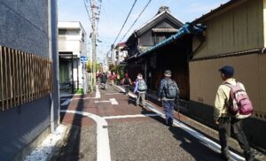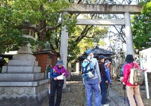 朝9時、地下鉄新端駅改札口前に集まり出発しました。まず山崎川左岸を歩き瑞穂公園の東側隅にある石碑と井戸の『あゆちの水』に立ち寄りました。石碑には万葉集の一首が刻まれている。「あゆ」とは湧き出るの、意味する古語で、かつて東の高地、東部丘陵から、この辺りに豊富な水が湧きだして、山崎川に注ぎ、瑞穂公園辺りから海に流れていた。古代の愛知県の海岸線は濃尾平野のほとんどが海に沈んでおり長島、津島、枇杷島が島を形成しており、かろうじて熱田、御器所、山崎が半島として陸地を形成していました。この海岸線を『年魚市潟』(あゆちがた)と呼び、愛知の語源となっている。