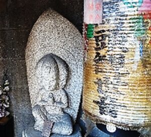 かたわらに地蔵さんの祠をよく見かけます。その昔、八事の山が整理された時に移設された『三体石仏』もあります。地蔵の顔を覗き込みながら歩いていると吹上公園の欅林中に入り込みました。ここで昼食を取った。40分弱の昼食の後、テレビ塔へ向かいます、JR中央線のガードを潜り、新栄の交差点を対角線方向に横断して、しばらく行くと東新町の交