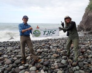 でもまだまだ遠かった! 13:40に大海原が確認できる場所まで到達し、いよいよゴールだと力を振り絞る。 念願だった日本海に到着できたが、海が時化ていて日本海タッチができなかったのだけが心残り。個人的には今回の山行で七倉(烏帽子岳)から日本海まで繋がったので大満足の山行であった。山行初日は雨天が確定していたにもかかわらず同行してくれた仲間に大感謝!!