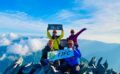 1時間弱で今回の山行の最高地点・朝日岳に登頂したがここは単なる通過点。 日本海までの距離と累積標高を思うと、不思議と胸が高鳴る。 登山は頂を目指すものだと思いがちだが、今回の栂海新道は「下ることで完結する山」なのだ。 山頂で記念撮影後、吹上のコルへ。 暫く歩くと池塘の広がる高原だ。 雨に煙るこんな景色も乙なもんさ、とやせ我慢を言いながらも早く止んでくれと愚痴も出る。 これが天に届いたか、10時になると突然素晴らしい青空が広がり、今まで隠れていた紅葉の始まった山々が全周にくっきりと見えてきた。 やはり池塘とそれに映る景色を見ながら歩くのは気分が高揚する。